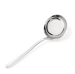 Serveer op een elegante manier diverse soorten saus met de Alessi sauslepel Caccia. Deze lepel komt uit de wereldberoemde Caccia bestekserie die in het jaar 1938 speciaal is ontworpen door de designer Luigi Caccia Dominioni. Deze collectie werd in meerdere landen geprezen vanwege het perfecte evenwicht tussen een ambachtelijke stijl en de industriële productie van huishoudelijke artikelen. De sauslepel beschikt daardoor over een schitterende vormgeving die een voorbeeld is van het Lombardijse classicisme. Daarnaast is het opschepgerei vervaardigd uit sterk en gepolijst 18/10 edelstaal. Door het gebruik van dit materiaal is al het bestek uit deze collectie vaatwasserbestendig. De Alessi sauslepel Caccia is een tijdloze toevoeging voor iedere tafelsetting en bestelt u eenvoudig in onze webshop!