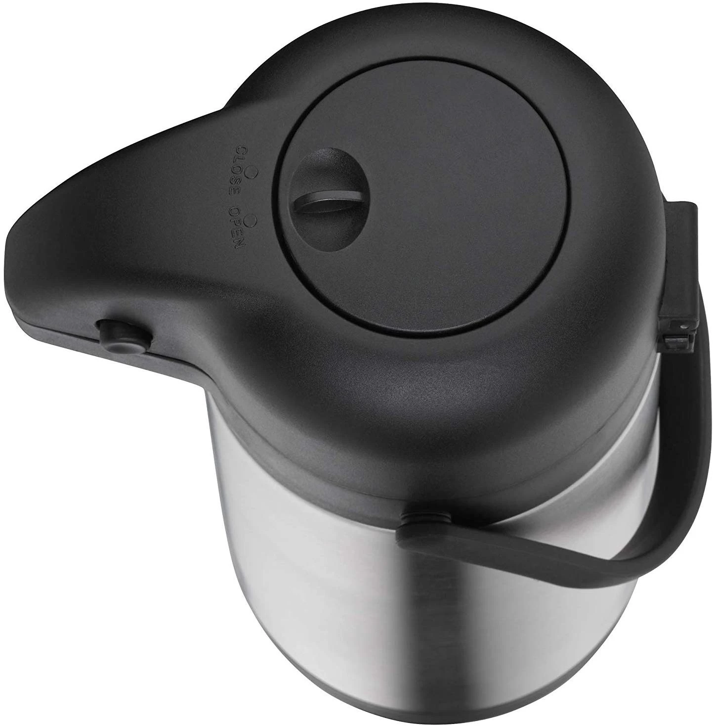 Deze thermoskan van Alfi is meer dan een thermoskan. Het houdt je drinken niet alleen 12 uur warm of 24 uur koud, maar je kan ook gemakkelijk een kop koffie tappen. Het systeem is met één hand te bedienen, lekker makkelijk! De thermoskan is aroma veilig, zo kan je optimaal genieten van elk kopje koffie.