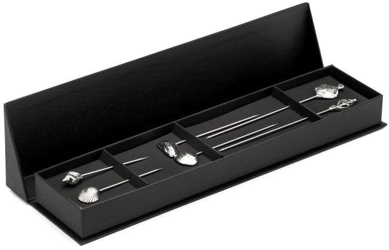De schaal- en schelpdierprikkers worden per 6 geleverd (2 kleine, 2 middelgrote en 2 grote) en iedere prikker heeft een ander design. Verschillende soorten schelpen en een scholvis zijn hierin duidelijk te herkennen. De prikkers zijn niet vaatwasserbestendig maar zijn gemakkelijk schoon te maken door ze na gebruik even af te spoelen met warm water.