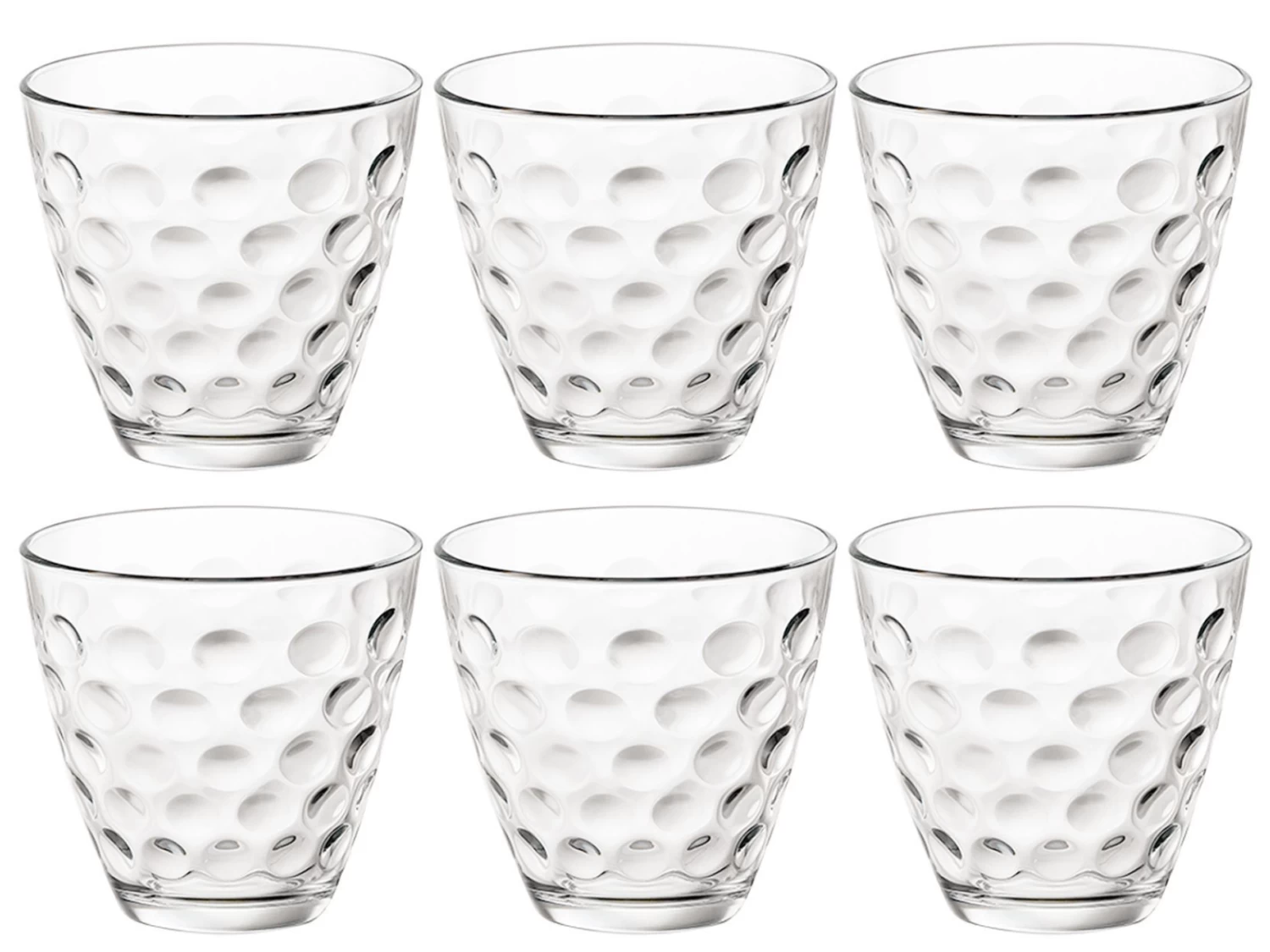 De Bormioli Dots glazen zijn zeer geschikt voor het serveren van water en frisdranken. Ook bevinden zich in deze serie theeglazen voor een heerlijke kop thee. De glazen beschikken allemaal over een kuiltjes patroon welke in het glas is verwerkt. Deze Bormioli glazen Dots transparant hebben een inhoud van 25 cl en worden per 6 stuks geleverd. De Bormioli Dots glazen zijn ook leuk om te combineren met andere glazen van verschillende Bormioli series.