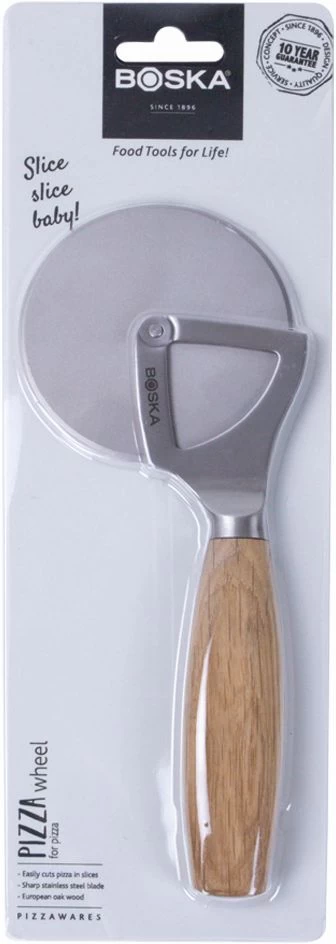 Je pizza snijden zonder dat alles er aan vast blijft kleven? Dat kan met de Boska Pizzasnijder Oslo+. Deze snijder is ideaal om pizza mee te snijden. Hij is erg stabiel en wiebelt niet, in tegenstelling tot veel andere pizzasnijders. Het handvat van deze snijder is gemaakt van een hoge kwaliteit eikenhout. Het hout mag helaas niet in de vaatwasser. Was het daarom na gebruik even met de hand af.