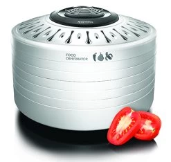 De Voedseldroger blaast warme droge lucht van boven naar beneden langs de droogrekken. De duur van het droogproces ligt aan wat, hoe en waar je het droogt. In een vochtige ruimte duurt het langer dan in een droge ruimte. Bovendien geldt hoe dunner de plakjes hoe sneller het droogt.
