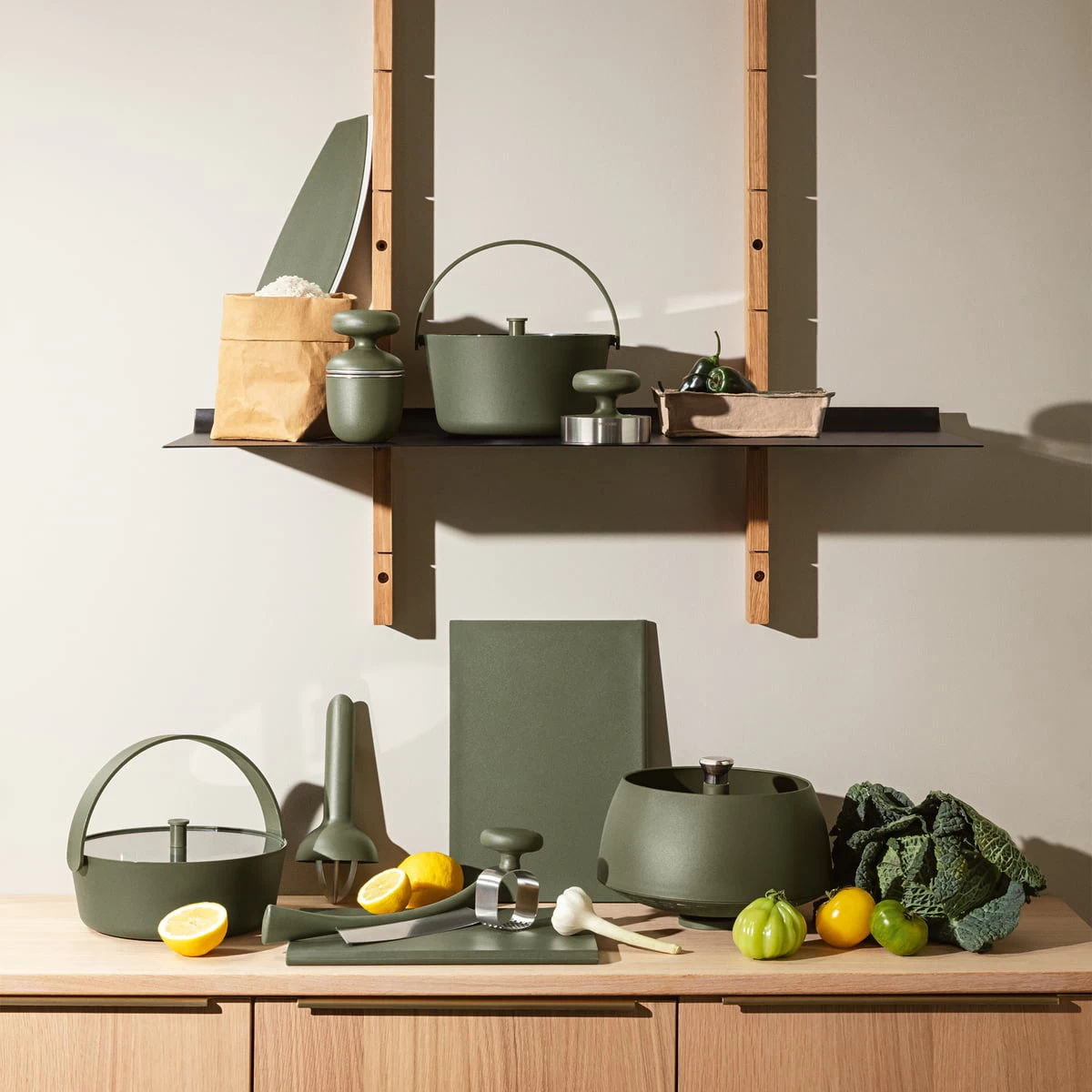 De Eva Solo Green Tools serie bestaat uit functioneel en milieuvriendelijk keukengerei met kunststof van 50% tarwevezel. De materiaalcombinatie kenmerkt zich door duurzaamheid en hittebestendigheid en brengt een stukje natuur in de keuken. De collectie omvat een pers voor citrusvruchten, knoflook of hamburgers, een specerijenmolen en verschillende messen. Dankzij de ergonomisch gevormde handgrepen ligt het keukengerei goed in de hand en is de voorbereiding bijzonder eenvoudig. Daarnaast scoren de producten met heldere lijnen en natuurlijke elegantie in Scandinavisch design.