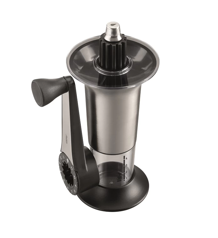 Bepaal zelf de fijnheid van uw gemalen bonen met de Gefu koffiemolen Lorenzo. Met deze gebruiksvriendelijke molen heeft u keuze uit 11 maalgraden, zodat uw koffie volledig naar wens is! Door het keramieke maalwerk wordt de koffie zeer verfijnd gemalen. U kunt in één keer koffie malen voor 4 kopjes, wat duidelijk aangegeven staat op het opvangbakje. De hendel kunt u na gebruik verwijderen en aan de zijkant van de molen bevestigen, hierdoor neemt de molen weinig ruimte in beslag!