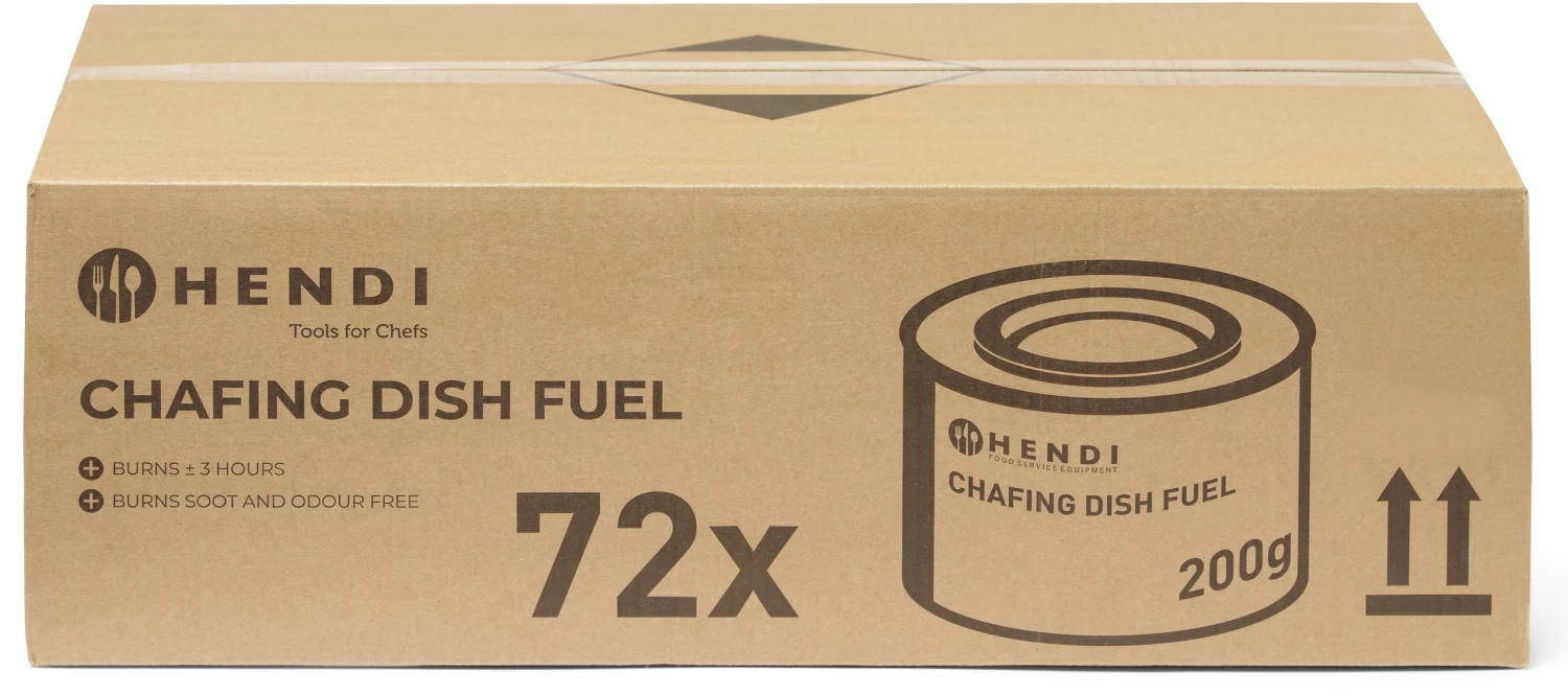 Hendi Brandpasta is gemaakt van natuurlijke (bio) ethanol alcohol, gemengd met water en een verdikkingsmiddel. Brandpasta wordt kunstmatig zo bitter gemaakt dat het niet doorgeslikt kan worden. Om chaving dishes (warmhoud bakken) te verhitten heeft u speciale brandpasta houders nodig. De brandduur is ongeveer 3 uur.
