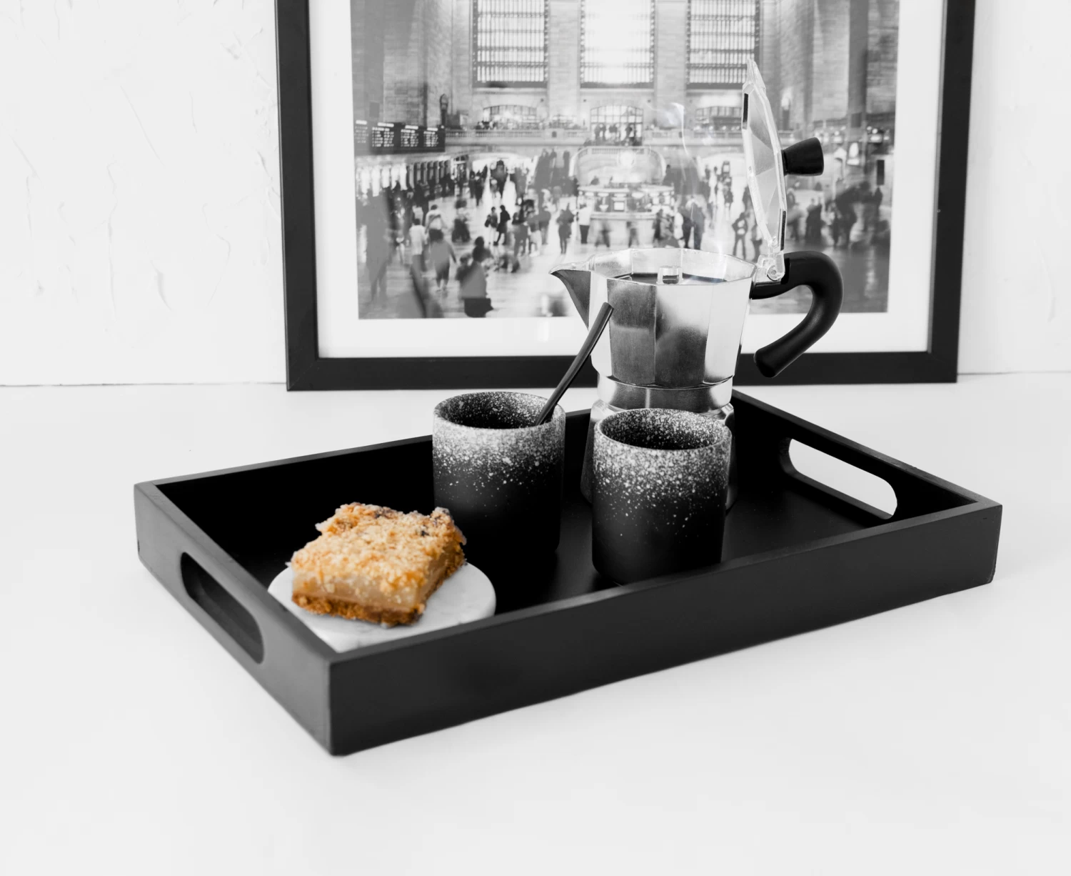 Met het Jay Hill dienblad geniet je lekker van je ontbijtje op bed. Het dienblad heeft een afmeting van 35 x 22 cm en is daarmee geschikt voor één persoon. Het dienblad is gemakkelijk te tillen door de opstaande randen met opening. Het dienblad is ook te gebruiken als decoratie, om bijvoorbeeld een aantal kaarsen op te zetten.