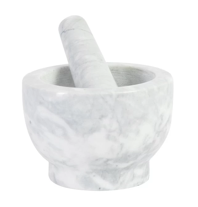 Maal eenvoudig jouw favoriete kruiden en specerijen fijn met deze vijzel van wit marmer. Met een doorsnede van 13 centimeter kun je voldoende kruiden en specerijen fijnmalen. Deze vijzel is handig in gebruik en staat ook nog eens prachtig op jouw aanrecht.