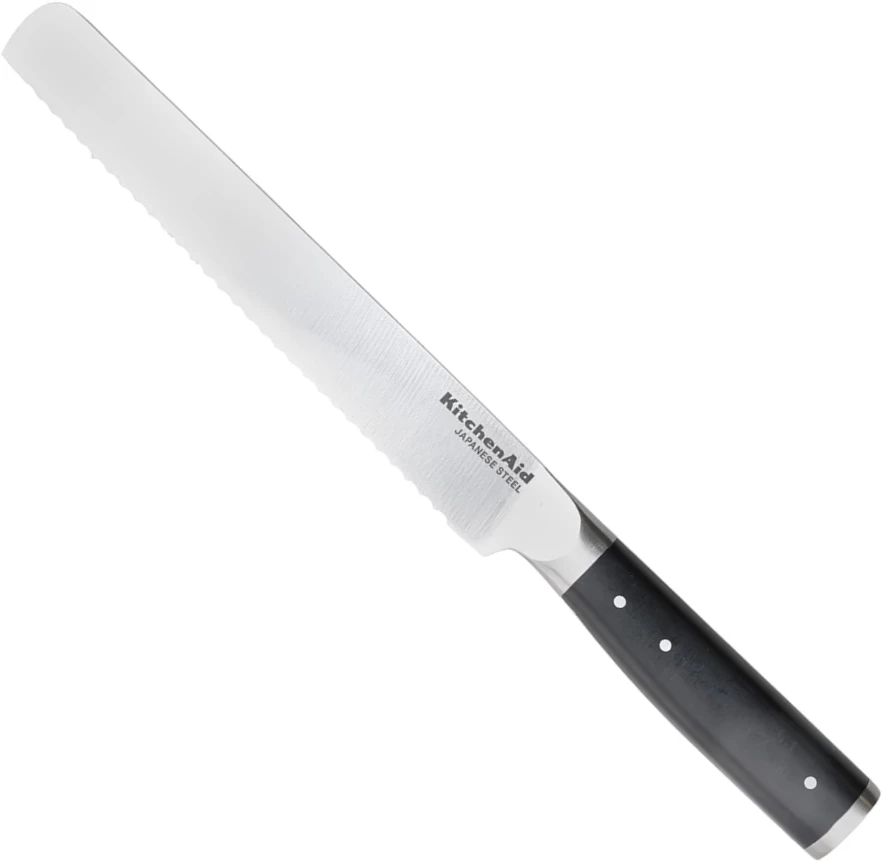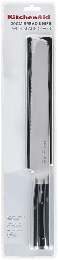 Broodmes met een 20 cm lang gekarteld lemmet van gehard Japans koolstofstaal. Perfect voor het snijden van diverse soorten brood. Uitgerust met een comfortabel handvat van hard en duurzaam materiaal met drievoudige klinknagels. Het mes wordt geleverd met een lemmetbeschermhoes. Het is vaatwasmachinebestendig, maar handwassen wordt aanbevolen om de snijeigenschappen van het lemmet en de esthetiek van het mes zelf langer te behouden.