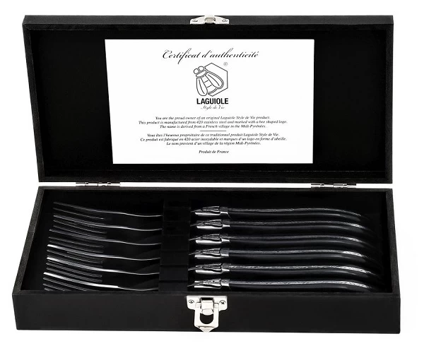 De Laguiole Steakvorken zijn een ideale aanvulling op de Laguiole Style de Vie steakmessen. De steakvorken zijn gemaakt van hoogwaardige materialen die voor een luxe, elegante uitstraling zorgen. De vorken sieren elke tafel en imponeren vrienden en kennissen. De vorken zijn daarnaast ook een heel mooi cadeau om te geven.