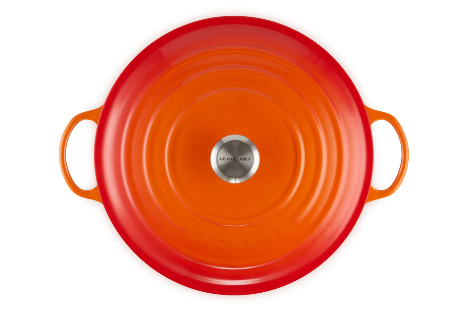 De Le Creuset Signature collectie staat bekend om zijn hoogwaardige kwaliteit. Een echt werkpaard: geschikt voor de oven (behalve de pannen met houten handgrepen), kookplaat, inductie of onder de grill. Dankzij de grote handgrepen kun de pan eenvoudig verplaatsen van de kookplaat naar de oven of naar de tafel, zelfs als je ovenhandschoenen aan hebt.