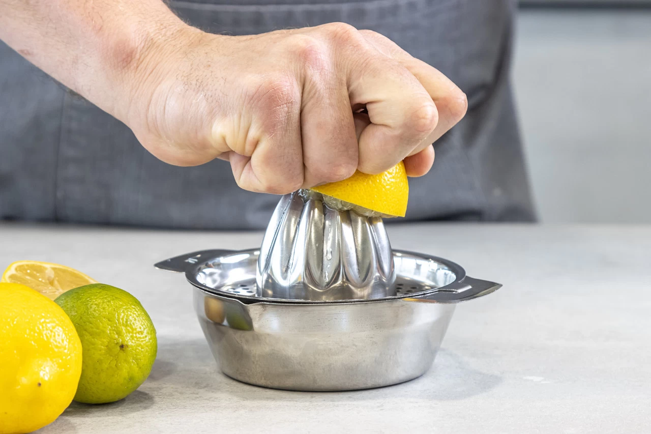 Pers allerlei citrus vruchten met de MasterClass citruspers. Pers citrusvruchten door de vrucht op de pers te drukken. Dan komt het sap van de vrucht los en druipt het zonder te knoeien in het opvangbakje. Klaar met persen? Schenk dan het sap via het schenktuitje in een glas of een andere kom. De pitjes en ander vruchtvlees wordt opgevangen door de filter, waardoor er allen sap in het opvangbakje zit. De breedte van de pers is 13 centimeter. Na gebruik kan de pers in de vaatwasser worden schoongemaakt.