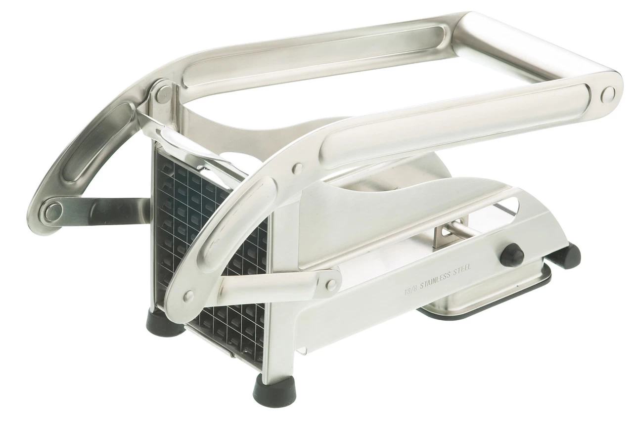 Hou jij ervan om je eigen friet te maken? Dan is de MasterClass Frietsnijder RVS wat voor jou! Deze frietsnijder is gemaakt van roestvrij staal en is gemakkelijk in gebruik. Doe de aardappel ertussen en druk de hendel omlaag, en klaar! Na het gebruiken van de MasterClass Frietsnijder RVS kan deze gemakkelijk met de hand worden gereinigd. De frietsnijder heeft twee messen om frietjes mee te snijden. Maak dikkere friet met het mes met 36 gaten en maak dunnere friet met het mes met 64 gaten.