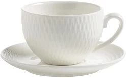 Geniet in de ochtend van een heerlijke espresso dankzij de schitterende Maxwell & Williams espresso kop met schotel Diamonds Round. Dit kopje is vervaardigd uit hoogwaardig white basic porselein en beschikt over een tijdloos diamant patroon. Dankzij dit schitterend patroon heeft de espresso kop met schotel net wat extra’s dan alledaags servies. Hierdoor is het servies uit de Diamonds Round collectie niet alleen geschikt voor dagelijks gebruik, maar ook leuk om te gebruiken tijdens de feestdagen. Tevens kan het kopje zowel gebruikt worden in de vaatwasmachine, oven en magnetron. De Maxwell & Williams espresso kop met schotel Diamonds Round is een ware uitblinker op ieder tafelsetting!