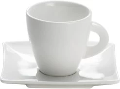De is een productlijn van serviesproducten met vierkantige en rechthoekige ontwerpen met daarin sierlijke rondingen aan de binnenzijde. De espresso kop met schotel is 10 cm breed en 6 cm hoog. Dit unieke servies is van hoogwaardig wit porselein en is gemakkelijk te combineren met de vele andere lijnen van Maxwell & Williams. Daarnaast is de collectie geschikt voor de vaatwasser, magnetron, vriezer en tot 100 graden in de oven. Wilt u meer weten over het materiaal waar dit product van gemaakt is? Lees dan hier alles over de kwaliteit van het .