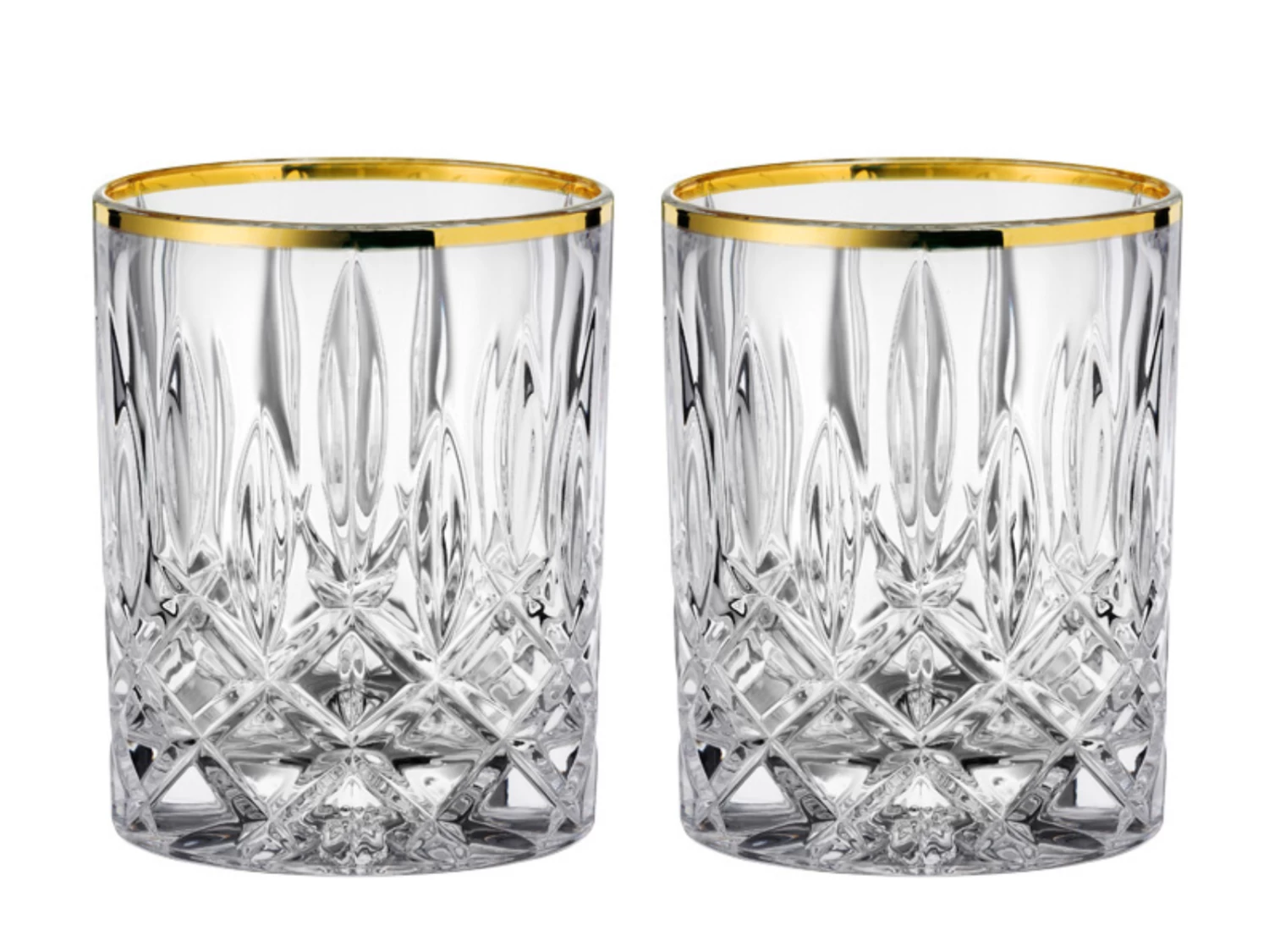 Deze Noblesse set van Nachtmann bevat 2 klassieke whiskeyglazen. De glazen zijn gemaakt van helder kristalglas en zijn voorzien van diep gegraveerde versieringen rondom en aan de onderzijde van de glazen. De whiskeyglazen zijn transparant en beschikken over een gouden randje aan de buitenkant, dit maakt ze erg chique en geschikt voor verschillende gelegenheden.