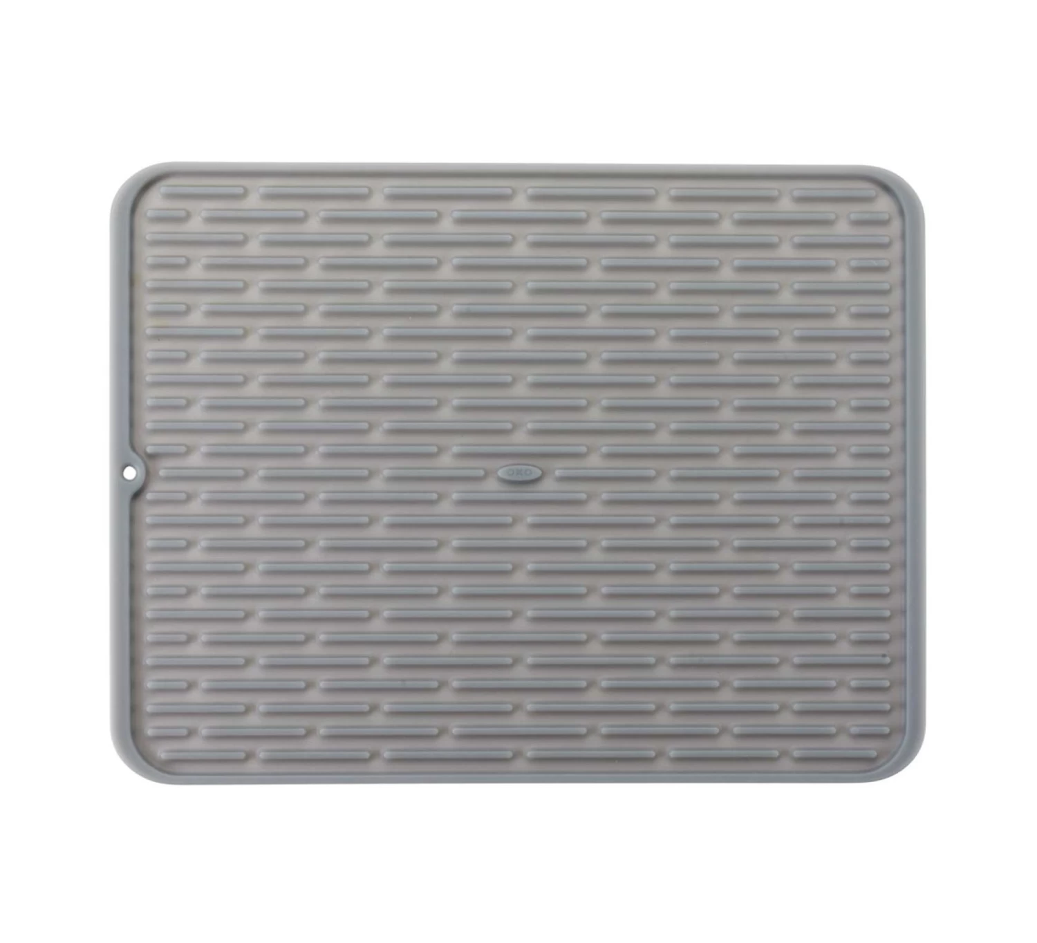 Deze droogmat van OXO Good Grips is handig voor het laten drogen van grote en breekbare vaat, of kleine afwasklussen tussendoor. Dankzij het geribbelde ontwerp kan de lucht rondom bij de vaat. Bovendien staat uw vaat stevig en verhoogd zodat alles schoon en hygiënisch blijft. De grote rechthoekige vorm ondersteunt ook verschillende soorten schalen en kookgerei. Na gebruik kan de mat gemakkelijk worden schoongemaakt, opgerold en opgehangen. De droogmat is gemaakt van hittebestendig siliconen, dus kan het ook als onderzetter fungeren. Met de OXO Good Grips Droogmat houdt u een schone keuken.