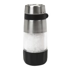 Met zijn roestvrijstalen accenten en heldere acryl, is deze OXO Good Grips zoutmolen perfect tijdens het koken en elegant voor gebruik op tafel. De zoutmolen is eenvoudig instelbaar van fijn tot grof, en ligt vlak wanneer deze omgekeerd is – voor eenvoudig bijvullen. Het niet-corrosieve keramische maalwerk absorbeert geen smaken of geuren, en zit aan de bovenkant van de molen zodat werkblad of tafel schoon blijven. De zoutmolen heeft een zachte, anti-slip greep voor comfortabel malen en wordt compleet geleverd met zeezout.
