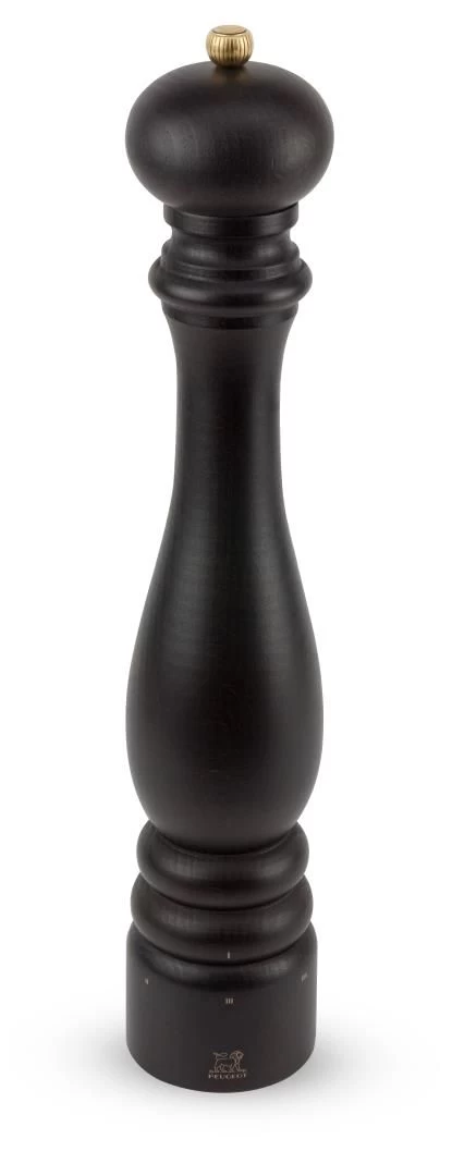 De Peugeot Pepermolen Paris Chocolat 40 cm is het klassieke en meeste bekendste model van Peugeot. De zoutmolen is gemaakt uit gelakt beukenhout. De grofheid van de maling kan je gemakkelijk instellen door het knopje bovenop de molen te verdraaien. Daarnaast is de molen voorzien van het unieke Peugeot maalwerk, dat het beste uit de specerij haalt. Het maalwerk is gemaakt van gehard en gesmeed staal. De Peugeot Pepermolen Paris Chocolat 40 cm is inclusief peperkorrels.