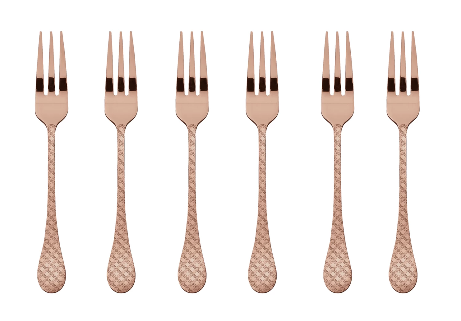 Kies voor een prachtig gedekte tafel met dit Sambonet Taormina bestek. Deze gebaksvorkjes zullen je gasten verrassen! Dankzij de print op het handvat is dit bestek net even anders dan je andere bestek. Het bestek komt in meerdere kleuren, kies voor zilver, zwart, koper of goud. Combineer de gebaksvorkjes bijvoorbeeld met de koffielepels of kies voor één van de besteksets!