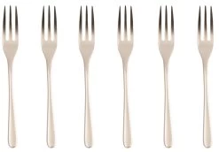 Gebak eten met een luxe touch? Deze gebaksvorkjes, geleverd in de kleur champagne, zijn afkomstig uit de Sambonet Taste collectie. Met de zes gekleurde gebaksvorkjes eet je samen met vrienden of familie je favoriete stuk gebak. De taartvorken van 14.5 cm zijn gemaakt van 18/10 RVS en zijn vervolgens gecoat met een champagnegekleurde laag. Hierover is een matte laag aangebracht. Ook fijn: na gebruik kunnen de Sambonet gebaksvorkjes makkelijk in de vaatwasser gereinigd worden.