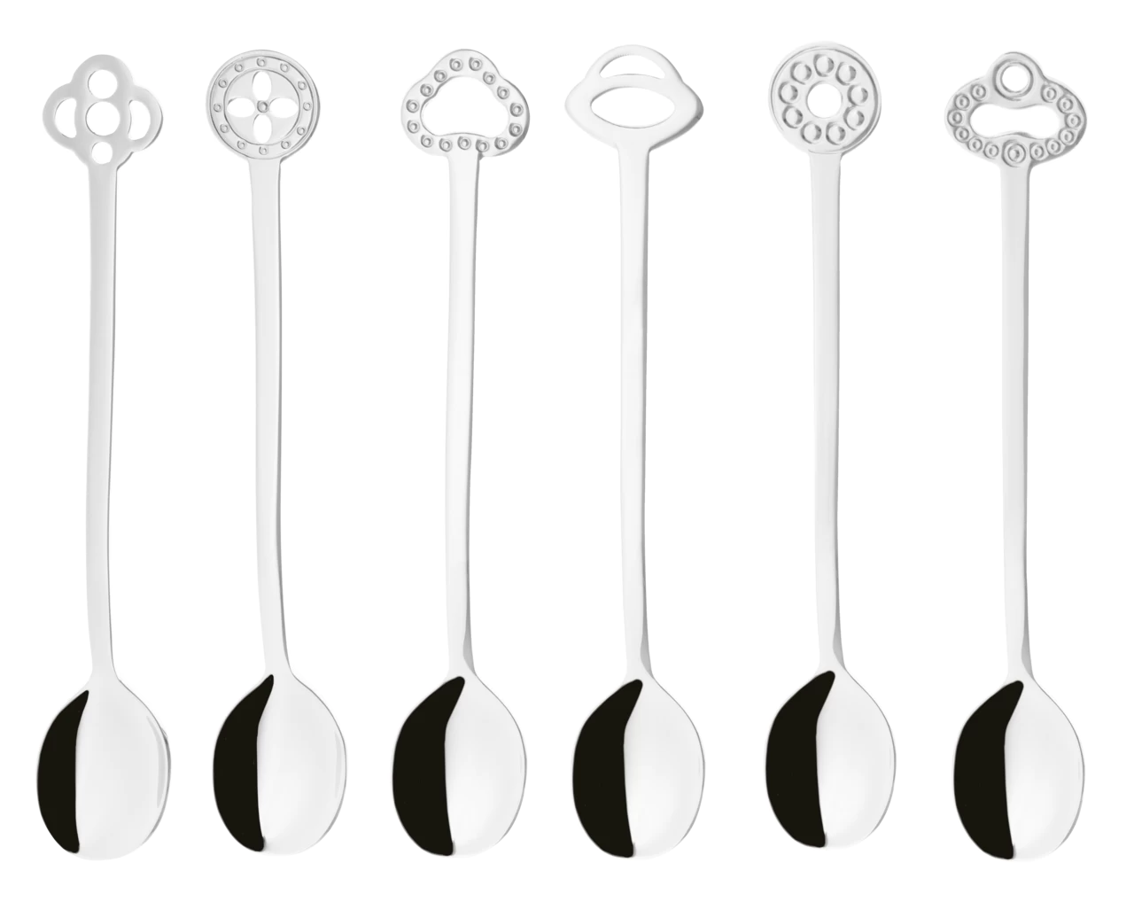 De Moorse invloeden zijn goed te zien bij deze koffielepels van Sambonet. De zes koffielepels hebben allemaal een uniek figuurtje die gebaseerd zijn op het Moorse tijdperk. Sambonet bestek heeft een speciale PVD-coating waardoor het extra stevig is en in de vaatwasser kan. Combineer de koffielepels met het andere bestek uit de Party Items collectie om je bestekset compleet te maken!