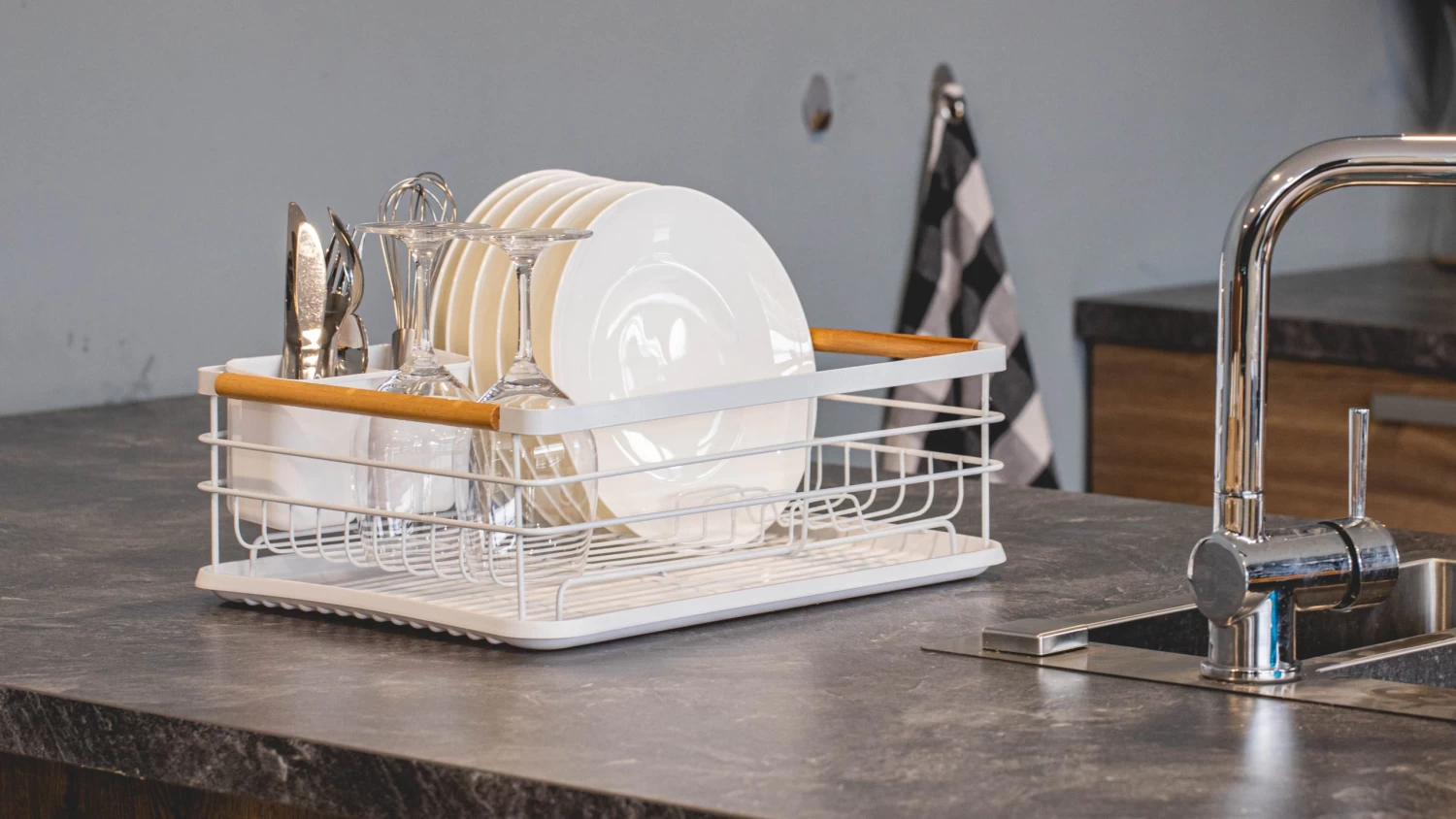 Zet je schone vaat in dit trendy afdruiprek. Aan de onderkant van het Cookinglife afdruiprek vind je een los plateau dat het water opvangt. Deze kun je na het afdrogen van de vaat gemakkelijk leeg maken. Het Cookinglife afdruiprek wordt geleverd inclusief een bestekbakje. Het bestekbakje heeft twee vakken en is vast te maken aan de zijkant van het afdruiprek. Wij adviseren om na het gebruik het afwasrek te drogen.