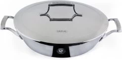 De Hapjespan zorgt voor gelijkmatige warmteverdeling dankzij de aluminium kern. De innovatieve dubbelwandig roestvrijstalen deksel behoudt vocht en temperatuur.