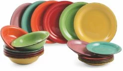 Met de Villa d’Este Serviesset Baita – Colori Caldi – 18-delig / 6 personen wordt het eten een feest! Deze serviesset bestaat namelijk uit Diverse kleuren, waardoor jij een vrolijke tafel dekt! Het servies is gemaakt van Aardewerk en is geschikt voor 6 personen. Daarnaast is het ook nog met de hand geschilderd, waardoor elk stuk uniek is! Na het gebruiken van de Villa d’Este Serviesset Baita – Colori Caldi – 18-delig / 6 personen kunnen deze eenvoudig worden gereinigd in de vaatwasser. De serviesset bestaat uit: