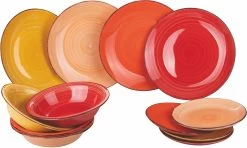 Met de Villa d’Este Serviesset Baita – Sunset – 12-delig / 4 personen wordt het eten een feest! Deze serviesset bestaat namelijk uit Diverse kleuren, waardoor jij een vrolijke tafel dekt! Het servies is gemaakt van Aardewerk en is geschikt voor 4 personen. Daarnaast is het ook nog met de hand geschilderd, waardoor elk stuk uniek is! Na het gebruiken van de Villa d’Este Serviesset Baita – Sunset – 12-delig / 4 personen kunnen deze eenvoudig worden gereinigd in de vaatwasser. De serviesset bestaat uit: