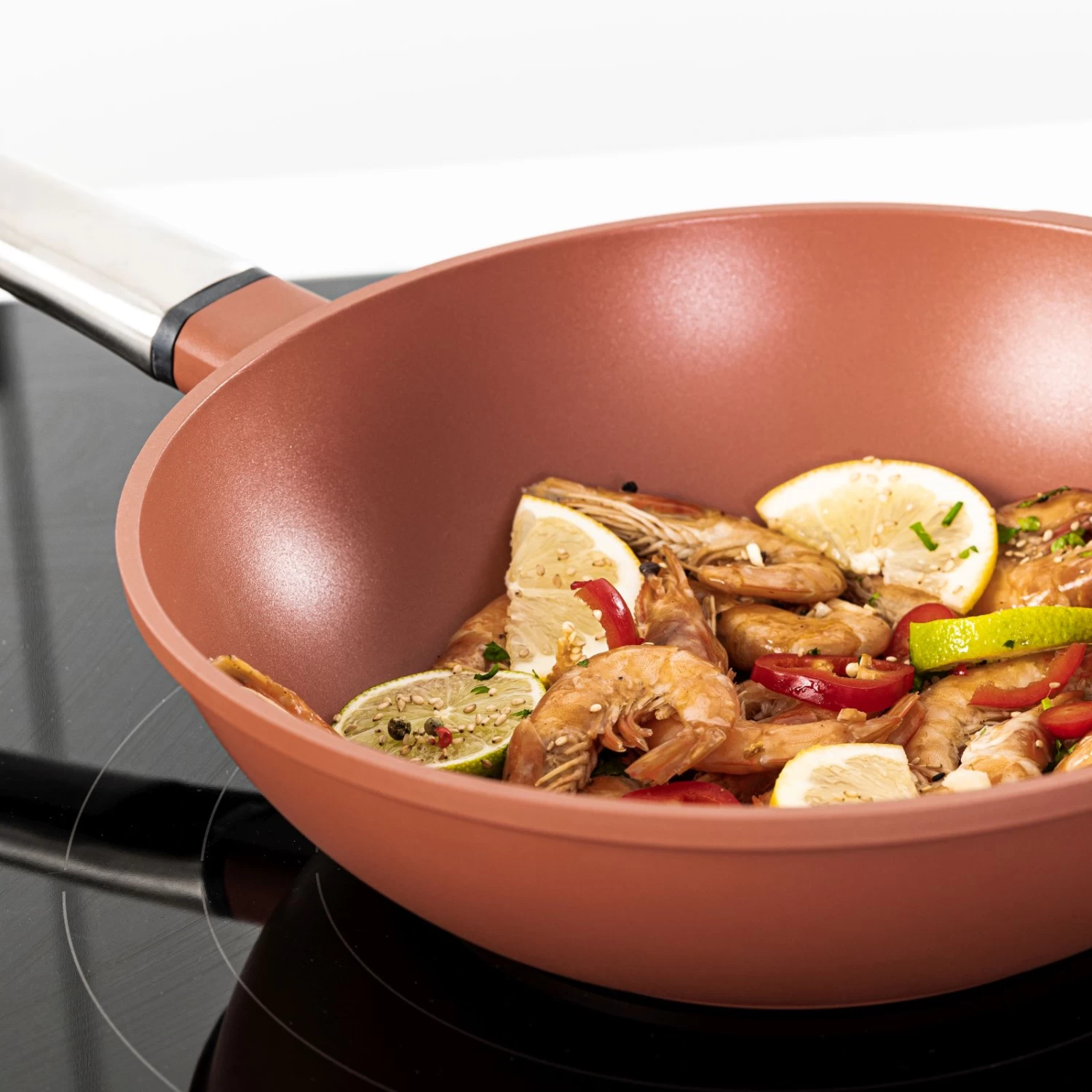 Deze wokpan van Westinghouse is perfect voor het wokken, bakken en braden van vlees, vis en groente. Maar ook voor fonduen en het maken van soepen. Dankzij de spikes onderaan de deksel blijft condens zich vormen waardoor er druppels ontstaan die je gerechten lekker sappig houden. Het roestvrijstalen handvat zorgt ervoor dat je niet je handen verbrand tijdens het verplaatsen van de pan.