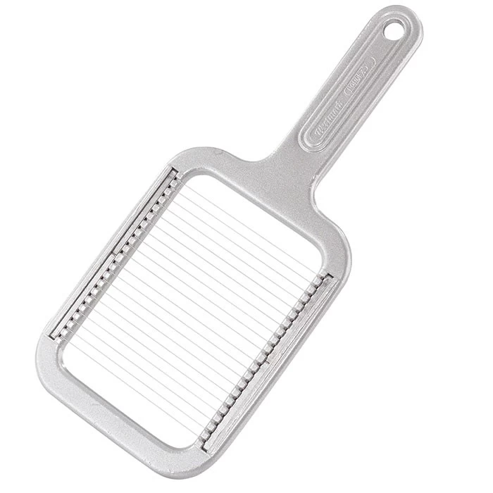De Westmark aardappel- en mozzarellasnijder is een professioneel uitgevoerde snijder met een stevig aluminium- en roestvrijstalen design. Handig om mozzarella of gekookte aardappelen in gelijkwaardige stukjes te snijden. Tip: houd de snijder in een schuine hoek en druk de gekookte aardappel met de vlakke hand door de snijdraden.