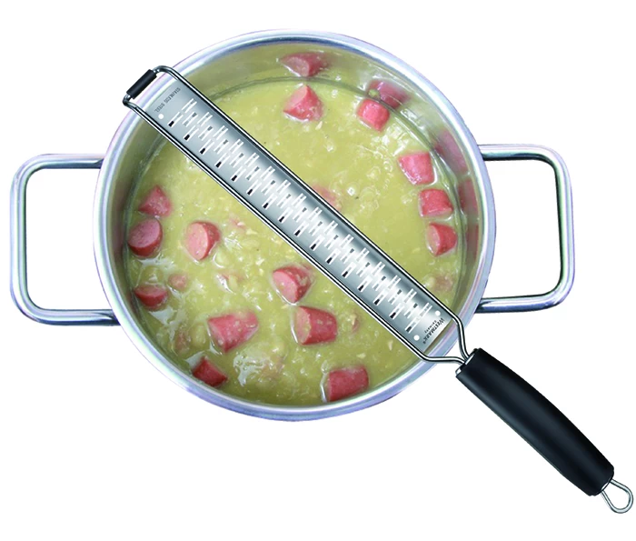 Deze handige rasp van Westmark is perfect voor het raspen van allerlei groenten, fruit en kaas. Het vierkante roestvrijstalen plaatje heeft een stevig kunststof handvat met een ring waaraan je de rasp kunt ophangen. Daarnaast heeft het handvat een anti-slip coating.