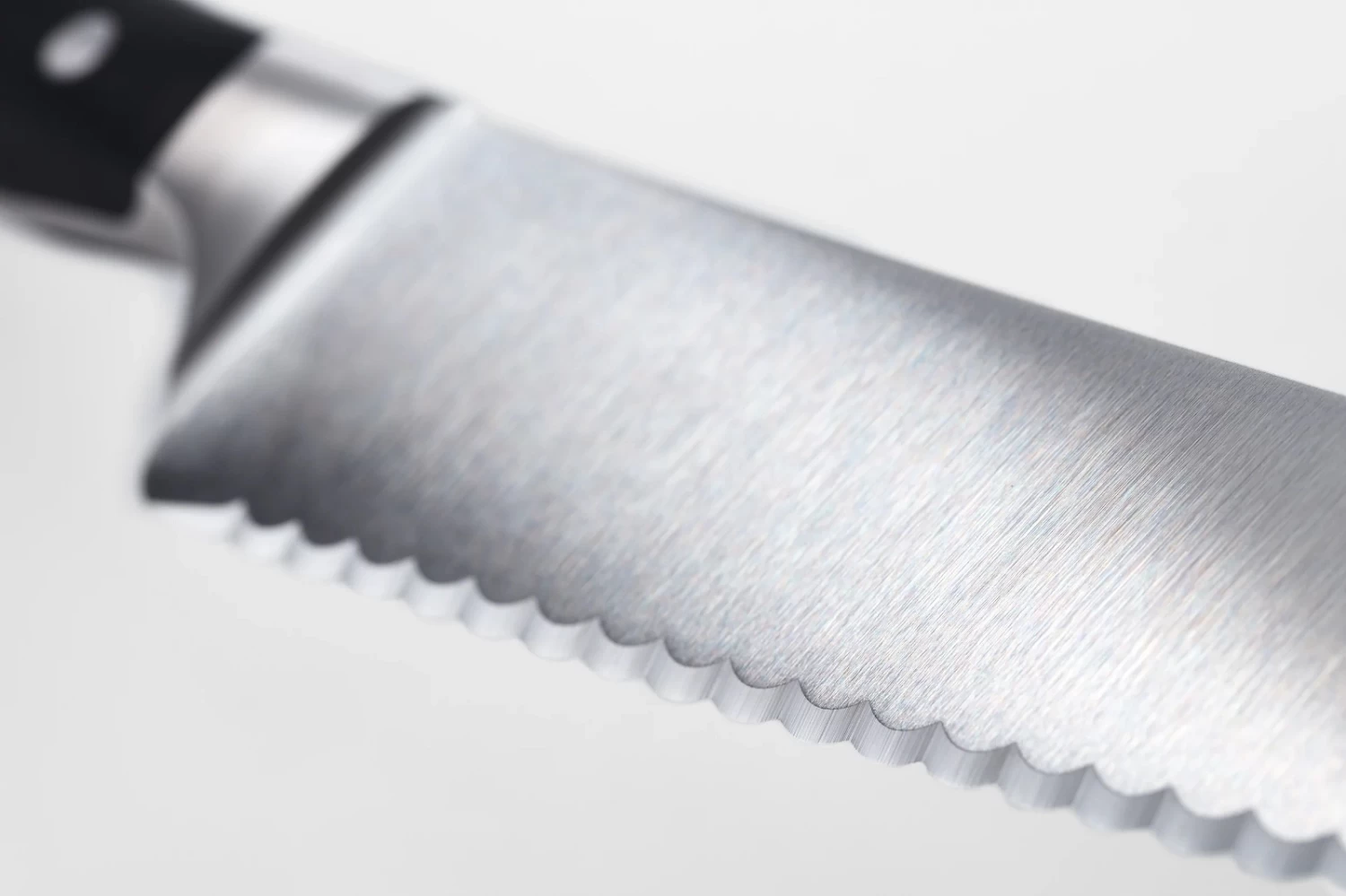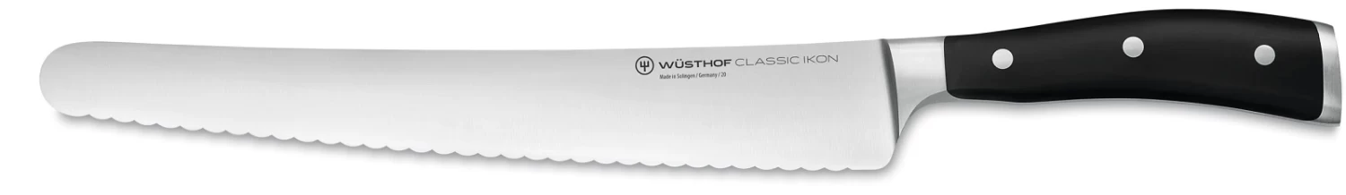 Geniet van een heerlijk verse brood tijdens de lunch, dankzij deze Wusthof Broodmes Classic Ikon 26 cm! Dit broodmes is perfect geschikt voor het snijden van broden, maar ook voor taarten en cakes, fruit en groenten. De naar buiten gebogen, gekartelde rand maakt het mogelijk een fijn te snijden zonder afbrokkelen of scheuren van het product. Na het gebruiken van de Wusthof Broodmes Classic Ikon 26 cm kan deze het beste met de hand worden gereinigd.