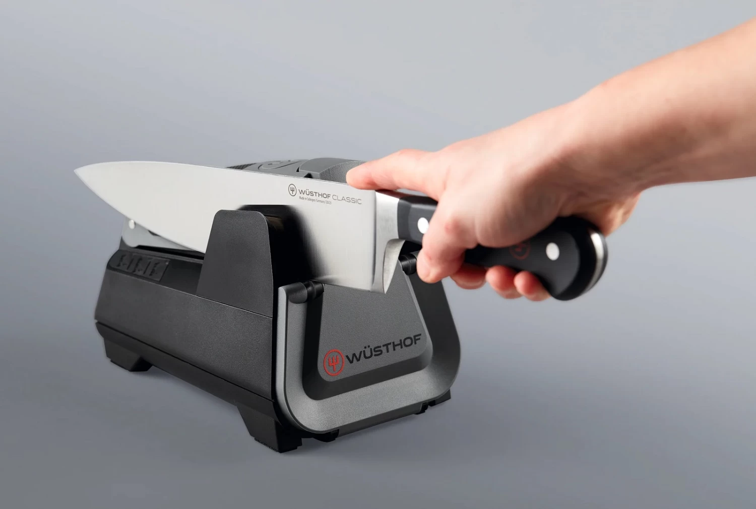 Slijp je messen binnen no-time weer als nieuw met de Wusthof Messenslijper – elektrisch – Easy Edge! De elektrische messenslijper heeft 3 fasen: